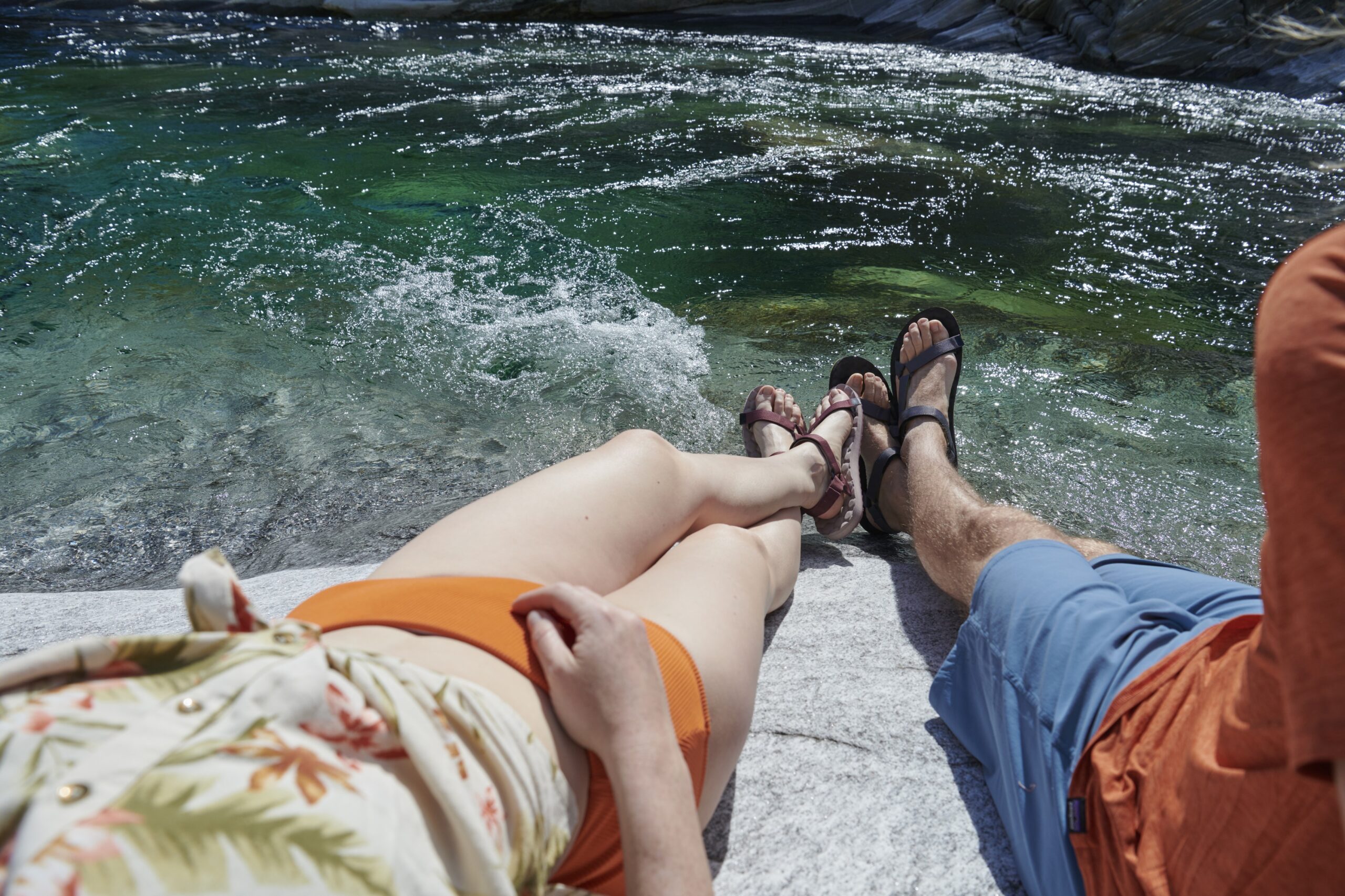 Für den Badespaß am See: Die wasserverträglichen, veganen Outdoorsandalen mit einer Oberkonstruktion aus robustem Gewebe und dem Quick-Fit-Schnellschnürsystem, einem schalenförmigen Fußbett aus Happy Cow Kunstleder und einer rutschfesten Vibram-Sohle bietet einen hervorragenden Sitz am Fuß und zuverlässige Stabilität.
