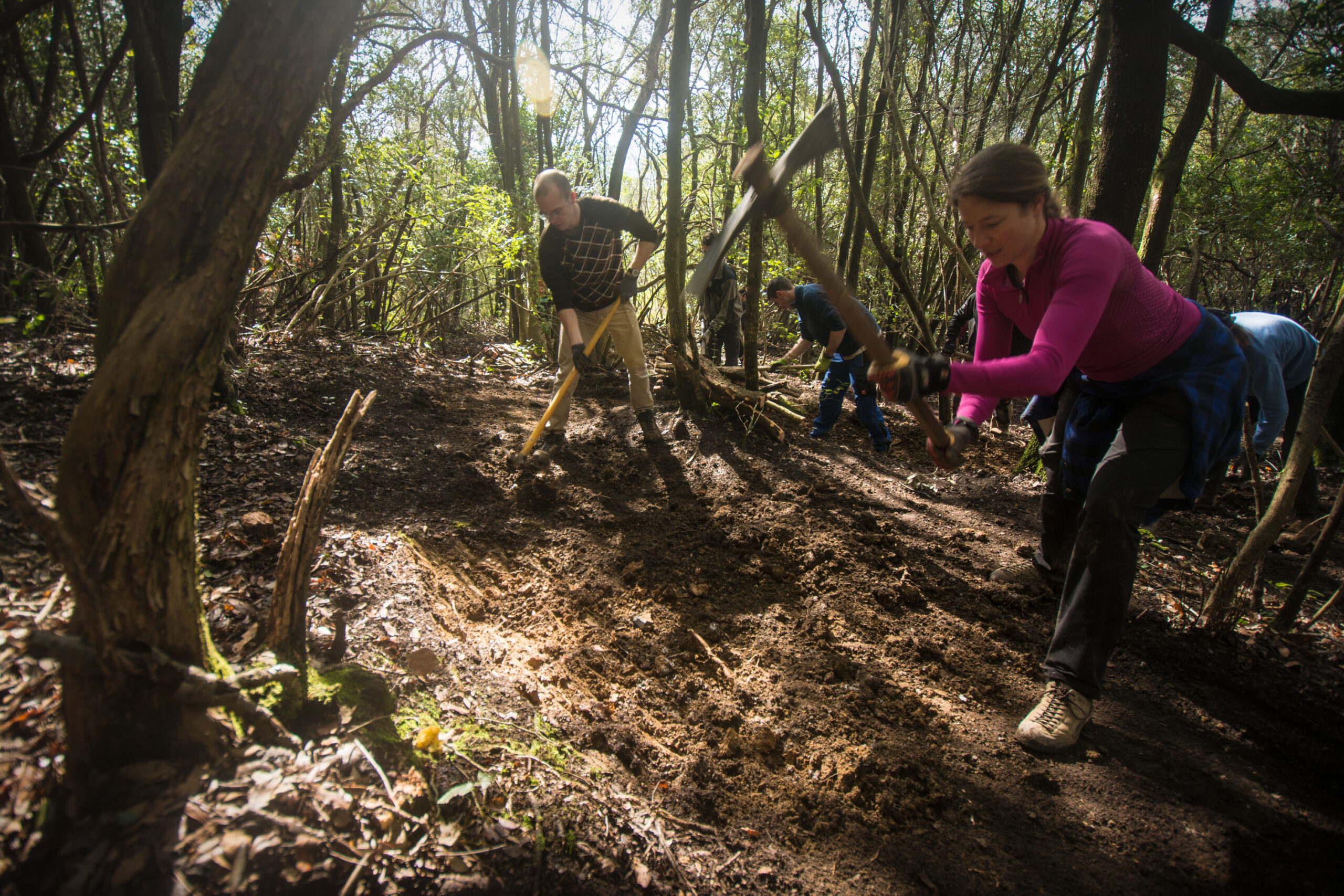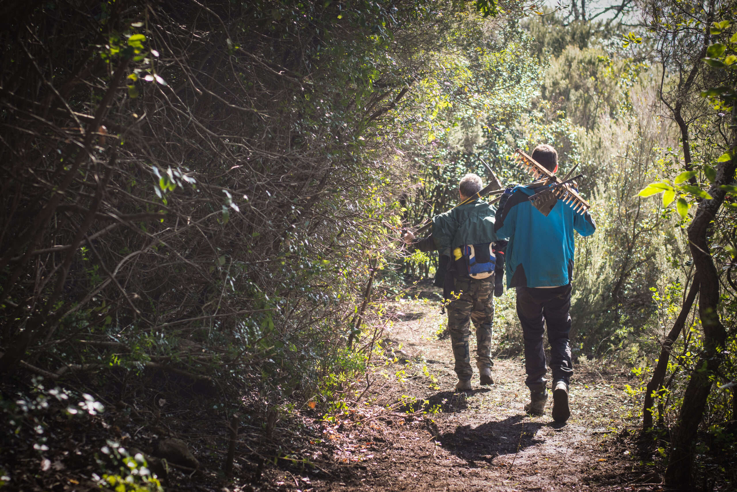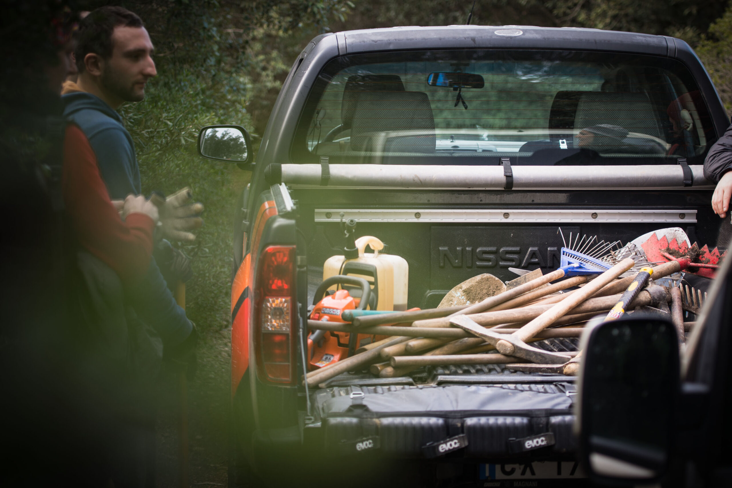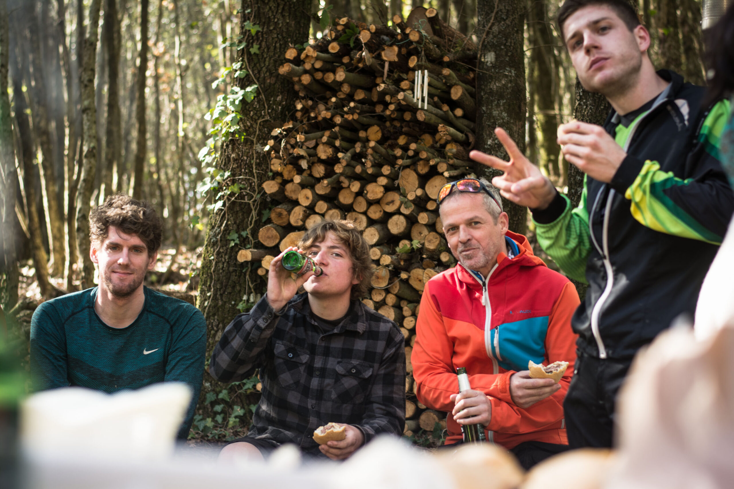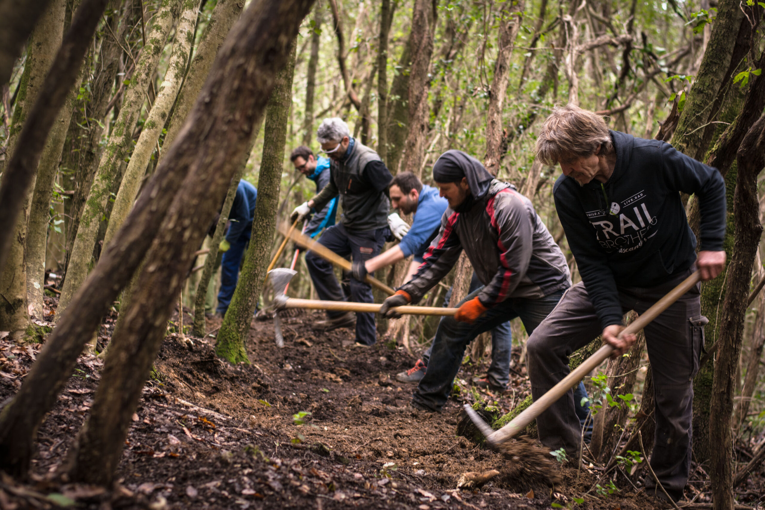 Schaufel, Pickel, Harke und Motorsäge liegen auf der Ladefläche des Pickups – für die freiwilligen Helfer ist deshalb schnell klar, dass Mountainbike-Trails zu bauen vor allem eines ist: anstrengende Handarbeit. Und trotzdem ist die Liste derer lang, die sich bei der Gruppierung „Trail Brothers“ gemeldet haben für eine Woche Freiwilligenarbeit. Francesco Guidi, einer der Gründer bei „Trail Brothers“ freut’s: „Leider müssen wir zahlreiche Interessierte auf einen späteren Einsatz vertrösten, weil wir für die zwei Wochen maximal 20 Helfer brauchen können.“ Der Lohn für die Teilnehmer: Das gute Gefühl, mit einem motivierten Team einige der besten Trails Italiens gebaut zu haben, echtes Teamwork und Kost und Logis in der legendären Mountainbike-Station Massa Vecchia in Massa Marittima. Nicht zu vergessen: Sie werden eingewiesen in die hohe Kunst des Trailbaus – von keinem geringeren als Ernst Schurter, Gründungsmitglied der „Trail Brothers“, ehemaliger Nationaltrainer der Schweizer Downhiller und Vater des amtierenden Olympiasiegers, Weltmeisters und Weltcupsiegers Nino Schurter.