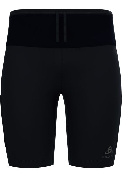 Die kurzen X-Alp Cargo-Trailrunning-Tights von Odlo aus teilweise recyceltem Polyester sind nicht nur besonders dehnbar, sondern auch mit zahlreichen Features ausgestattet, damit die Hände beim Trailrunning frei bleiben: vom integrierten Mesh-Gürtel mit Schlaufen für Stöcke über die zwei dehnbaren Mesh-Seitentaschen für Energy-Gels und ‑Riegel bis hin zur Reißverschlusstasche für Schlüssel und Kleingeld. Der Bund lässt sich über einen Kordelzug verstellen und reflektierende Details verbessern die Sichtbarkeit im Dunkeln.