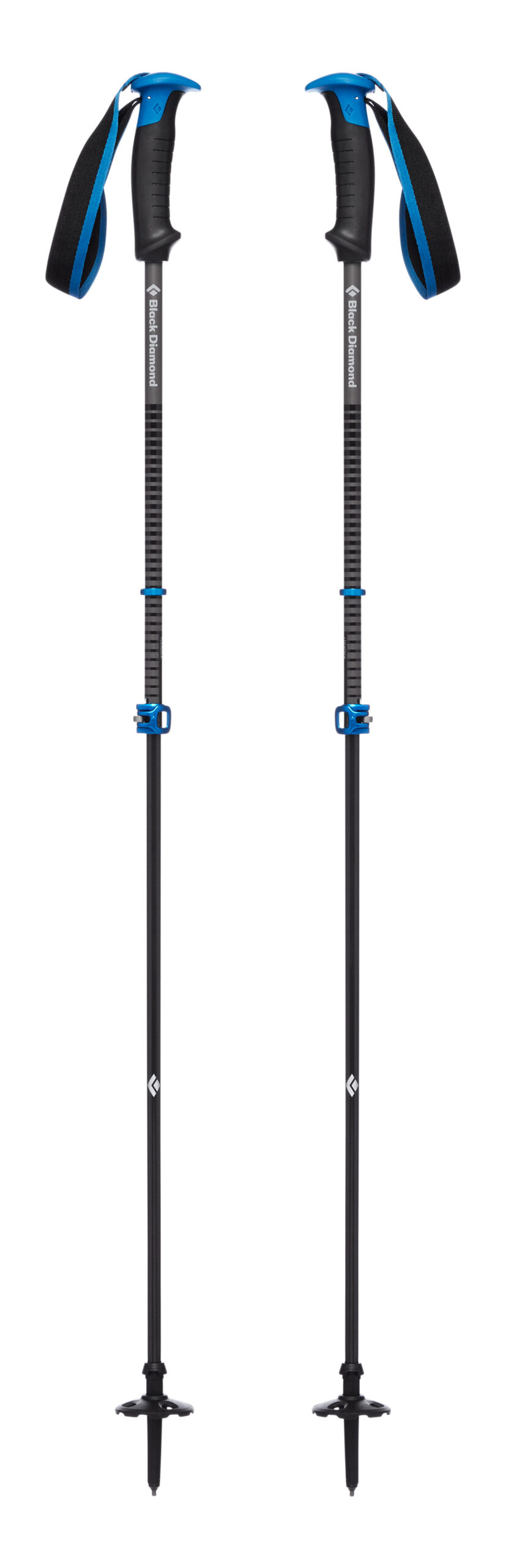 Der Razor Carbon Pro kombiniert ein besonders strapazierfähiges Obersegment aus Aluminium mit einem leichten Untersegment aus Karbonfaser. Dazu kommt das benutzerfreundliche FlickLock Pro-Einstellungssystem aus hochfestem Aluminium für schnelle und sichere Längenanpassungen. Die innovative SwitchRelease-Technologie der Handschlaufe mit verriegelbarer Auslösefunktion sorgt für zusätzliche Sicherheit, wenn sich der Stock in Büschen oder an Bäumen verfängt. Die Stöcke sind außerdem mit einem Tourenring für kurze, steile Geländepassagen ausgestattet.
