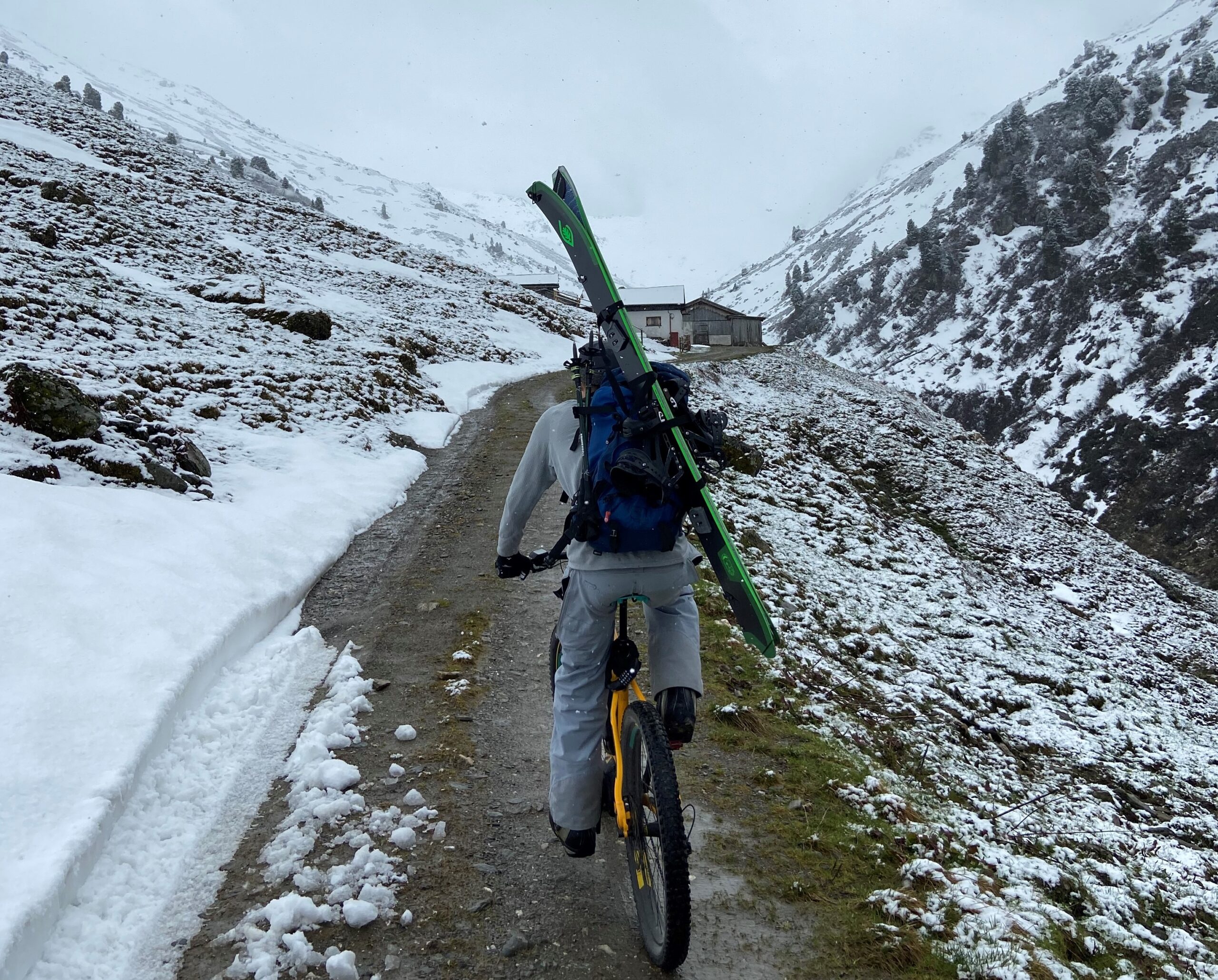 Für Bergsportler ist der Frühling die Jahreszeit der schier unbegrenzten Möglichkeiten. Während im Tal schon fast T-Shirt-Wetter herrscht, lockt der glänzende Firn der Bergflanken. Bis man zum weißen Glück gelangt, sind in einem ersten Schritt die Höhenmeter des Zustiegs zu überwinden. Zudem muss der Aufstieg im Frühjahr zeitig beginnen, um das perfekte Abfahrtsfenster zu erwischen. Dieses Fenster öffnet sich, wenn der über Nacht hartgefrorene Schnee durch die Sonneneinstrahlung „auffirnt“ – das bedeutet, dass die Schneeoberfläche weich wird, aber noch so tragfähig ist, dass man nicht einbricht. Das E-Bike birgt hier die Lösung. Schnell und unkompliziert radelt man, die Skier auf den Rucksack geschnallt, über die aperen Wege bis zur Schneegrenze. Zum Thema Bike to Ski stellen wir eine Auswahl an ausgesuchten Produkten vor – für den frühlingshaften Firngenuss.