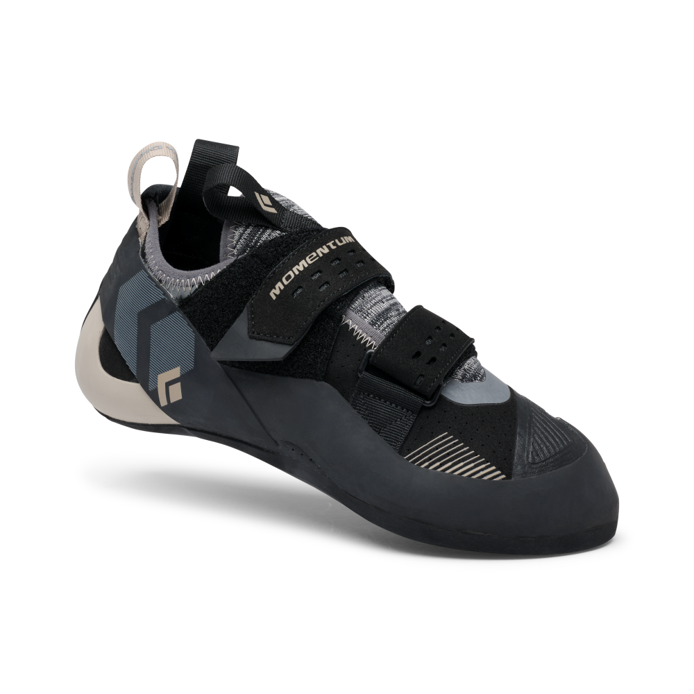 Der Momentum Velcro ist ein vielseitiger Kletterschuh mit Fokus auf Komfort und Performance. Seine neutralen, flachen Leisten eignen sich ideal für vertikale Routen und ganztägiges Klettern. Das Obermaterial aus Microsuede passt sich der Fußform an, ohne sich dauerhaft auszudehnen, während die recycelte Engineered Knit-Zunge für optimale Atmungsaktivität sorgt. Zwei Klettverschlussriemen ermöglichen ein schnelles An- und Ausziehen. Die überarbeitete Geometrie des Fersengummis gewährleistet eine konsistente Spannung, während die flexible, geformte Zwischensohle aus BlackLabel-Gummi zusätzlichen Halt und Sensibilität auf kleinen Tritten bietet. Der Black Label-Gummi an der Sohle wurde überarbeitet und bietet verbesserten Grip und Haltbarkeit.