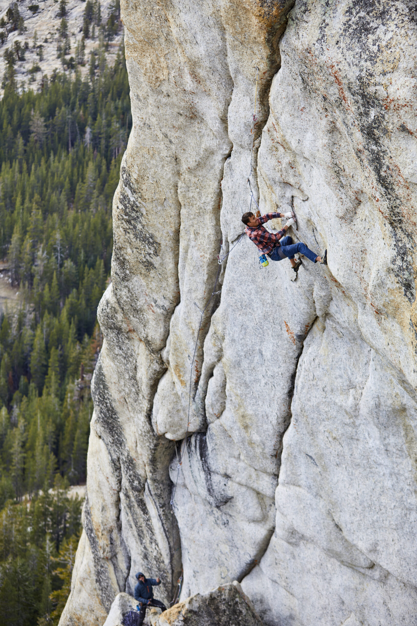 Im Sommer 2012 wanderten Mason Earle und ich zur Ostwand des DAFF Dome in Tuolumne hinauf und kletterten 100 Meter zu einem makellosen, bogenförmigen Riss. Wir bohrten die Linie ein, machten sie sauber und begannen, den 5-Sterne-Riss zu projektieren. Als wir schon nahe an einem Durchstieg waren, verschlechterte sich jedoch Masons Gesundheit. Aufgrund seiner Erkrankung an MECFS, auch als chronisches Erschöpfungssyndrom bekannt, verlor Mason plötzlich die Fähigkeit zu klettern. Wir plagten uns mit dem Pirates Code. Würden wir den Anschluss verlieren? Würden wir zurückgelassen werden? Wir suchten Hilfe bei einem jungen Trad-Kletterer aus der Bay Area. Connor Herson stieg ein und kämpfte sich den steilen Riss hinauf; mit vielen Hand- und Fußklemmern schaffte er es lautstark bis zu einem Zug vor dem Standplatz. Wir wussten, dass es eine harte Route war. Im Herbst 2022 gelang Herson die erste freie Begehung von Pirate’s Code (5.14d/ 9a+), einer der härtesten Kletterrouten des Yosemite National Park.