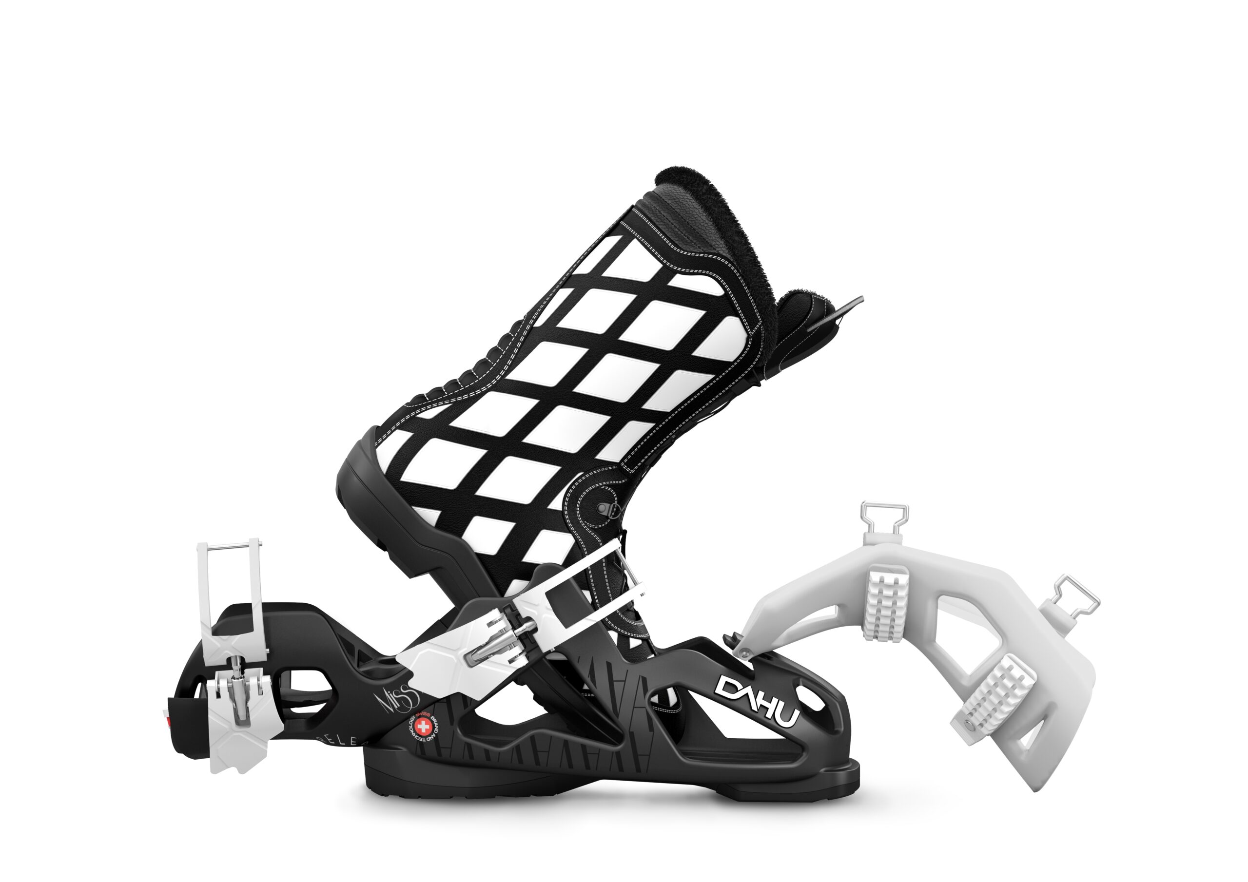Für sicheres Fortbewegen mit der Hartschale im Schnee wurde am Exoskelett eine neue rutschfeste, bi-materielle Sohlenplatte verbaut. Die neuen Dahu Ankle Free gibt es als Modelle für Herren und Damen.