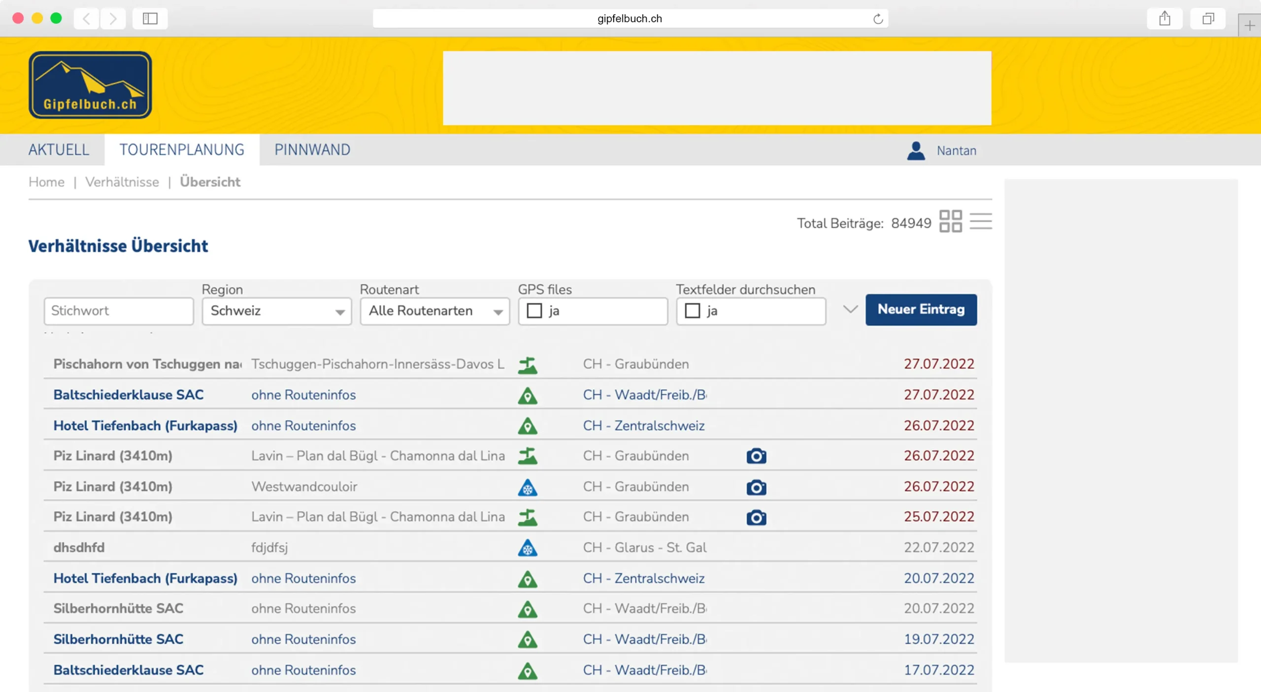 Seit über 20 Jahren dient Gipfelbuch.ch AlpinistInnen im Winter und im Sommer als zentrale digitale Tourenplanungsplattform und fördert den Austausch mit Gleichgesinnten. Geografisch deckt Gipfelbuch.ch die europäischen Alpen ab, wobei der Schwerpunkt auf dem deutschsprachigen Alpenraum liegt. Mit über 20 Mio. Seitenaufrufen und über 3.5 Mio. Besuchern im Jahr ist Gipfelbuch.ch mit seinen aktuellen Verhältnisinformationen die führende Plattform im DACH-Markt. Nach einer intensiven Konzeptions-, Entwicklungs- und Testphase geht nun die 3. Generation von Gipfelbuch.ch mit einem komplett neuen technischen Fundament online.