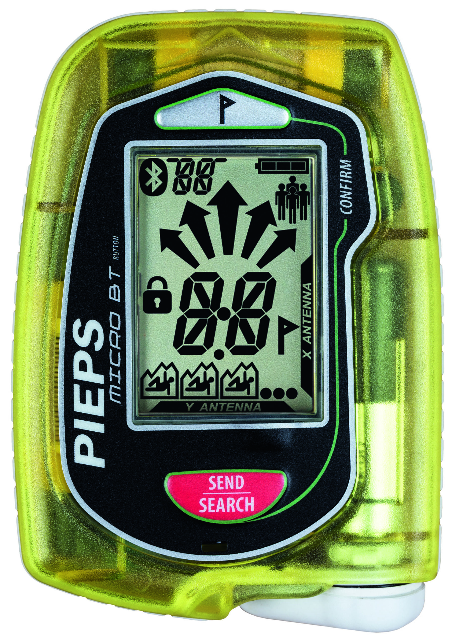 Mit nur 150 g inklusive Batterie ist das neue Micro BT Button das kleinste und leichteste volldigitale 3-Antennen-LVS-Gerät auf dem Markt. Es vereint Leistungsfähigkeit mit intuitiver Bedienung. Per Druck auf den roten Send-Search-Button wird manuell vom Sende- auf den Suchmodus umgeschaltet. Das Gerät vibriert beim ersten Empfang eines Signals, so dass der Fokus auf die visuelle Oberflächensuche gerichtet werden kann. Geräteupdates lassen sich kabellos über Bluetooth mit der Pieps-App einfach und schnell aufspielen.