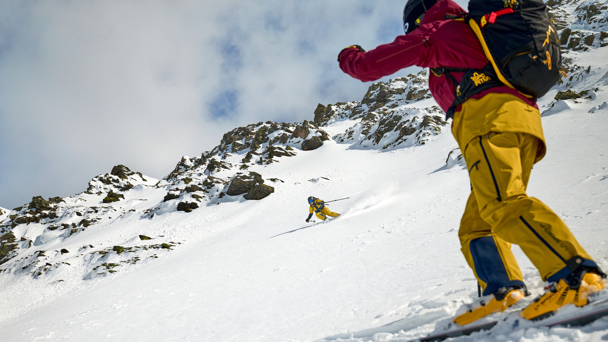 Als passende Ergänzung zum Schuh, hat La Sportiva ein neue Hardshell-Kombi entwickelt, die den Vorlieben der Freeriding-Community entgegenkommt. Hohe Bewegungsfreiheit, lockere Schnitte und ein wenig mehr Raum als bei traditioneller Skit(-touren)bekleidung: Das Sender GTX Performance Outfit (erhältlich für Damen und Herren) ist aus dreilagigem, PFC-freiem GORE-TEX Performance Laminat mit der innovativen ePE-Membran gefertigt. Jacke und Latzhose sind mit allen Features und Details ausgerüstet, die das Backcountry verlangt.