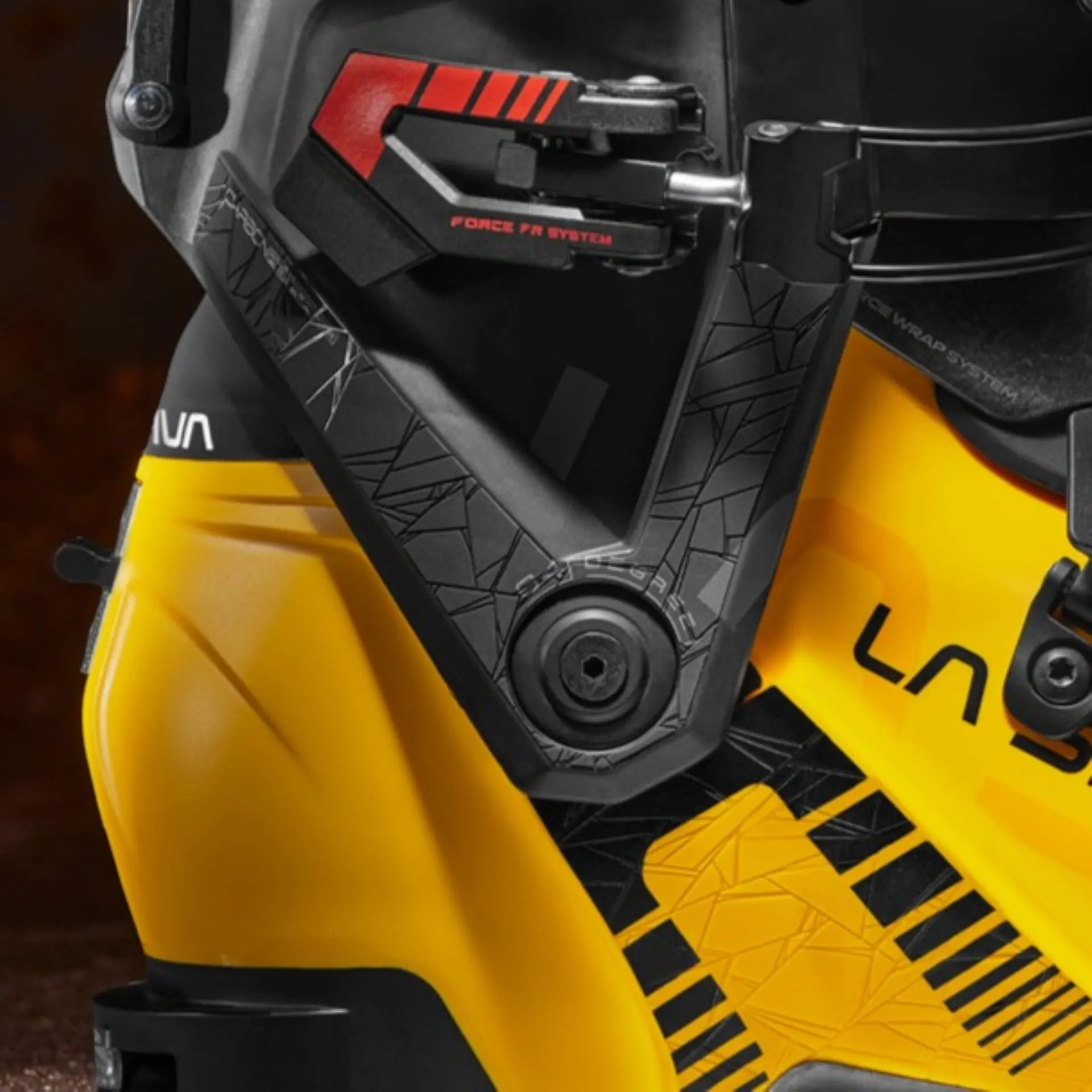 Der Zusammenhalt von Schale und Manschette ist Aufgabe des Drehgelenks in der Achse, das dem Stiefel eine sehr natürliche Gehfähigkeit und einen Bewegungsbereich von 64 Grad verleiht. Die Schnallen aus Force Technopolymer sind stark, robust und gleichzeitig federleicht.