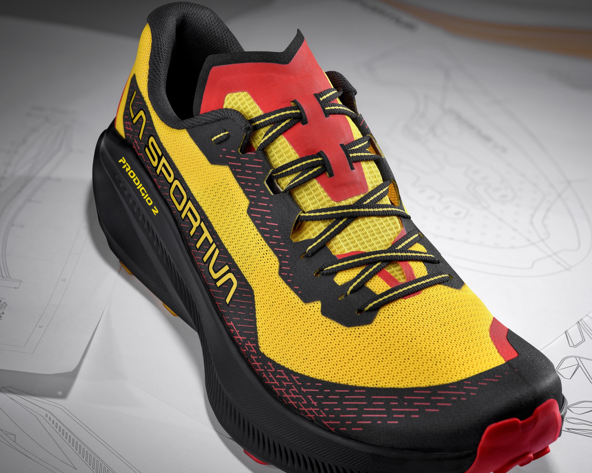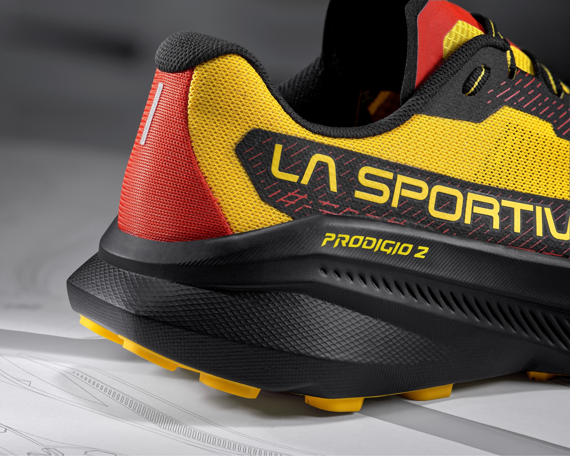 Verbessert wurden der Schutz im Knöchelbereich, Stabilität und Komfort im Vorfuß sowie der Schutz der Fußsohle in diesem Bereich. Das Wrapping-System wurde ein Stück erweitert, um mehr Stabilität bieten zu können und im Obermaterial wurde ein neues High-Tenacity-Mesh verwendet, das 20 Prozent höhere Abriebfestigkeit und 15 Prozent mehr Rissfestigkeit bietet. Bei der Schaftkonstruktion profitiert der Prodigio 2 vom Prodigio Pro, die eine verbesserte Anpassungsfähigkeit an unterschiedliche Fuß-Volumina erlaubt. Weitere Verbesserungen beinhalten eine höhere Polsterung von Zunge und Schaft, ein geupdatete Fersenkappe, mehr Schutz im Zehenbereich vor Steinen und Wurzeln sowie eine Neuausrichtung der Midsole, mit welcher der Prodigio 2 auf beeindruckende 18 Prozent mehr Energierückgabe und 6 Prozent mehr Dämpfung im Vergleich zum ersten Modell kommt.
