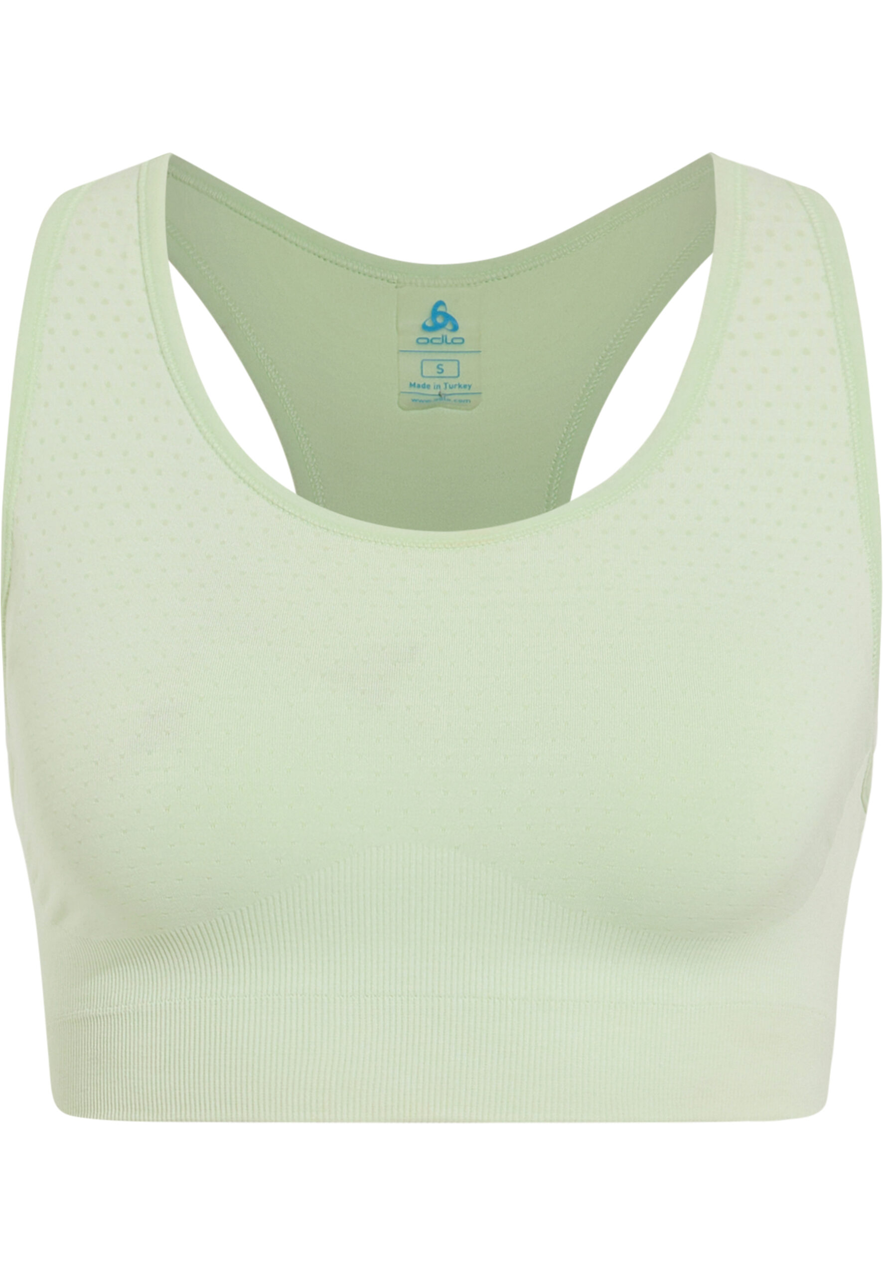 Mit seinem neuartigen, teilweise recycelten Polyblend und einer noch bequemeren Passform ist der Seamless Sport-BH mit mittlerem Halt die perfekte Ergänzung zur Laufbekleidung von Odlo. Das breite Unterbrustband fühlt sich angenehm weich auf der Haut an und das nahtlose Design bietet maximalen Tragekomfort ohne Scheuern. Dank der herausnehmbaren Pads kann der Sitz individuell angepasst werden. Ideal für Aktivitäten mit mittlerer Intensität wie Radfahren oder Wandern.