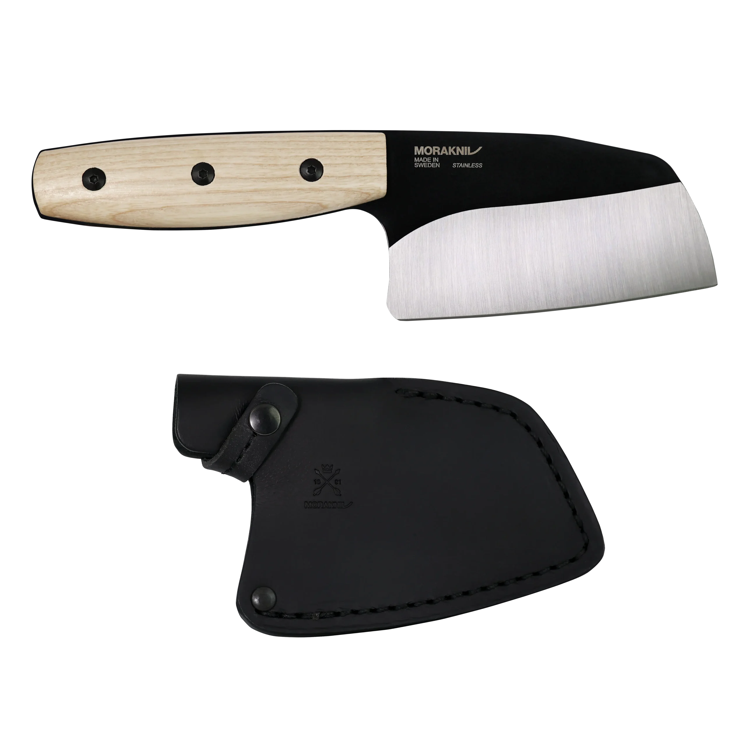 Das Rombo ist ein handgefertigtes Messer mit durchgehendem Erl für das Kochen im Freien. Der ergonomische Griff aus hellem Eschenholz aus europäischer FSC-zertifizierter Waldwirtschaft und der 2.5 mm dicken, grossen, schwarzen Klinge aus recyceltem, rostfreiem schwedischem Stahl mit ausgeprägtem Lebensmittelschliff verfeinert die Zubereitung von Mahlzeiten in der freien Natur.