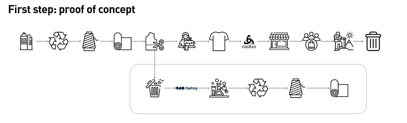 Zur Finanzierung des Proof of Concept haben DePoly und Odlo Gelder in Höhe von 24.000 CHF aus einem Innovationsfonds im Rahmen des Innovation Boosters „Applied Circular Sustainability“ der Schweizerischen Agentur für Innovationsförderung Innosuisse beantragt. Insgesamt stellt Innosuisse 18 derartiger Instrumente bereit. Das von DePoly und Odlo eingereichte Projekt wurde dabei aus einer Reihe von Initiativen ausgewählt.