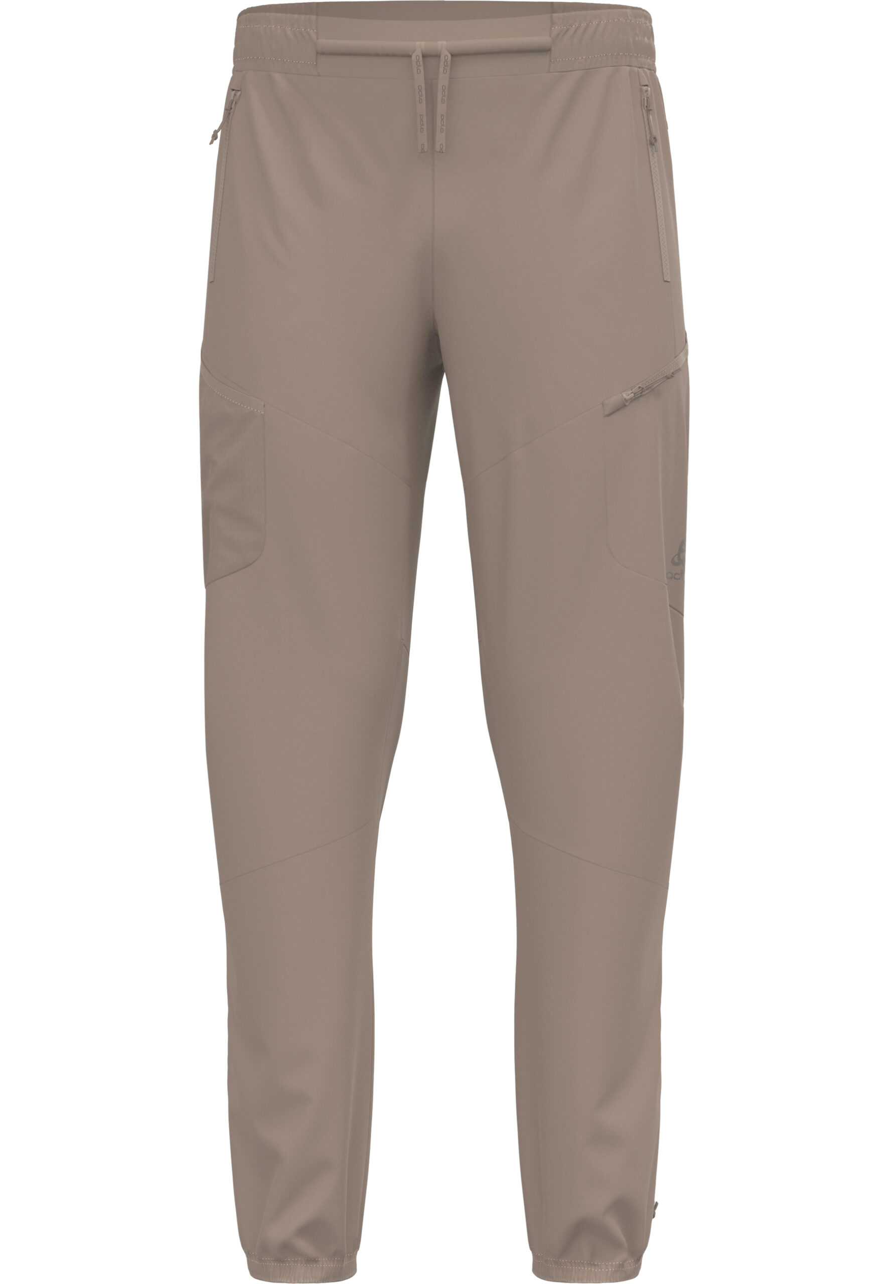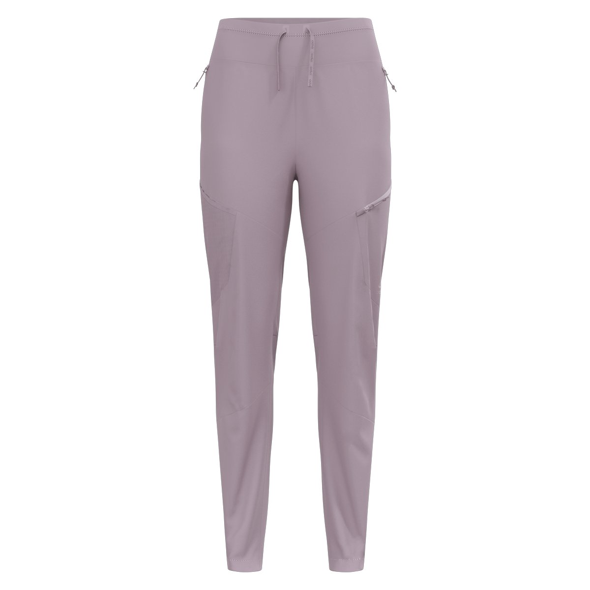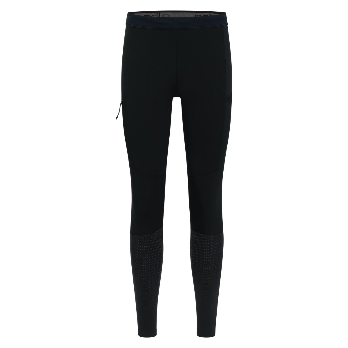 Die winddichten Zeroweight Pro Warm Langlauftights sind an die Winterlauftights von Odlo angelehnt, verfügen aber über spezielle Features für den Skilanglauf. Sie bestehen aus einem Mix aus teilweise recyceltem Softshell-Material und gebürstetem Jersey, der Langlaufbegeisterte bei Wind und Wetter trocken und warm hält. An der Oberschenkelvorderseite schützt das wind- und wasserfeste Softshell-Material vor eisigem Wind, während der Power-Stretch-Jersey an den Unterschenkeln und an der Rückseite für maximale Bewegungsfreiheit und ein Plus an Wärme sorgt. Damit die Langlaufschuhe nicht an den Knöcheln scheuern, haben die Beinabschlüsse keinen Reißverschluss. Der hohe, breite Bund lässt sich mit dem außenliegenden Kordelzug ganz einfach anpassen. In den zwei Seitentaschen finden wichtige Dinge wie Handy, Schlüssel oder Energy-Gel Platz.