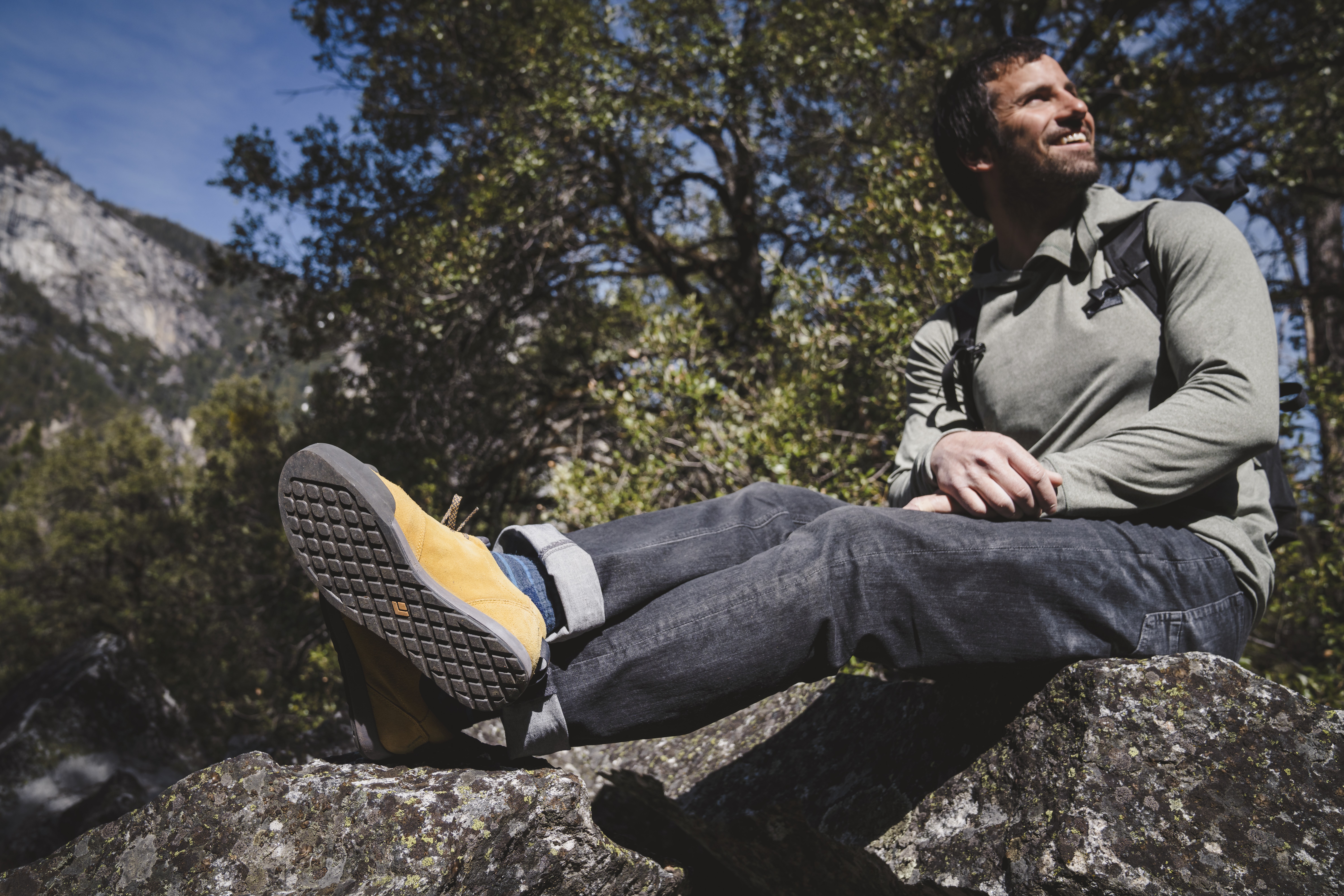 Dank rutschfester Sohle aus Black Diamond BlackLabel-Street-Gummi und Zehenschutz aus Gummi bewältigt der Prime auch Zustiege in den Bergen problemlos. Das langlebige, gefütterte Premium-Wildleder-Obermaterial sorgt für eine gute Passform und die EVA-Zwischensohle für hohen Tragekomfort. Die Gurtbandschlaufen an der Ferse bieten verschiedene Befestigungsmöglichkeiten, wenn man die Schuhe am Einstieg der Route verstauen möchte.