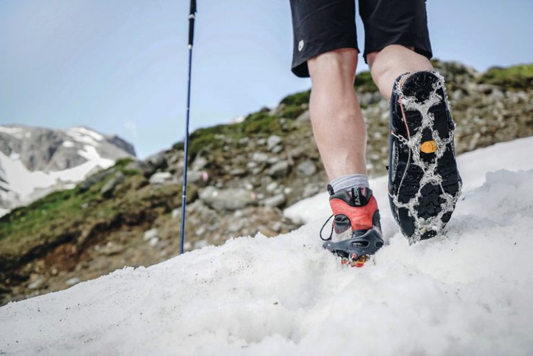 Schuhspikes werden immer beliebter, denn sie sind leicht anzulegen, geben auf eisigen Wegen und rutschigem Untergrund Sicherheit und verleihen Grip auf weichem Schnee. Selbst harte Altschneefelder lassen sich mit Grödel ohne großes Risiko queren.