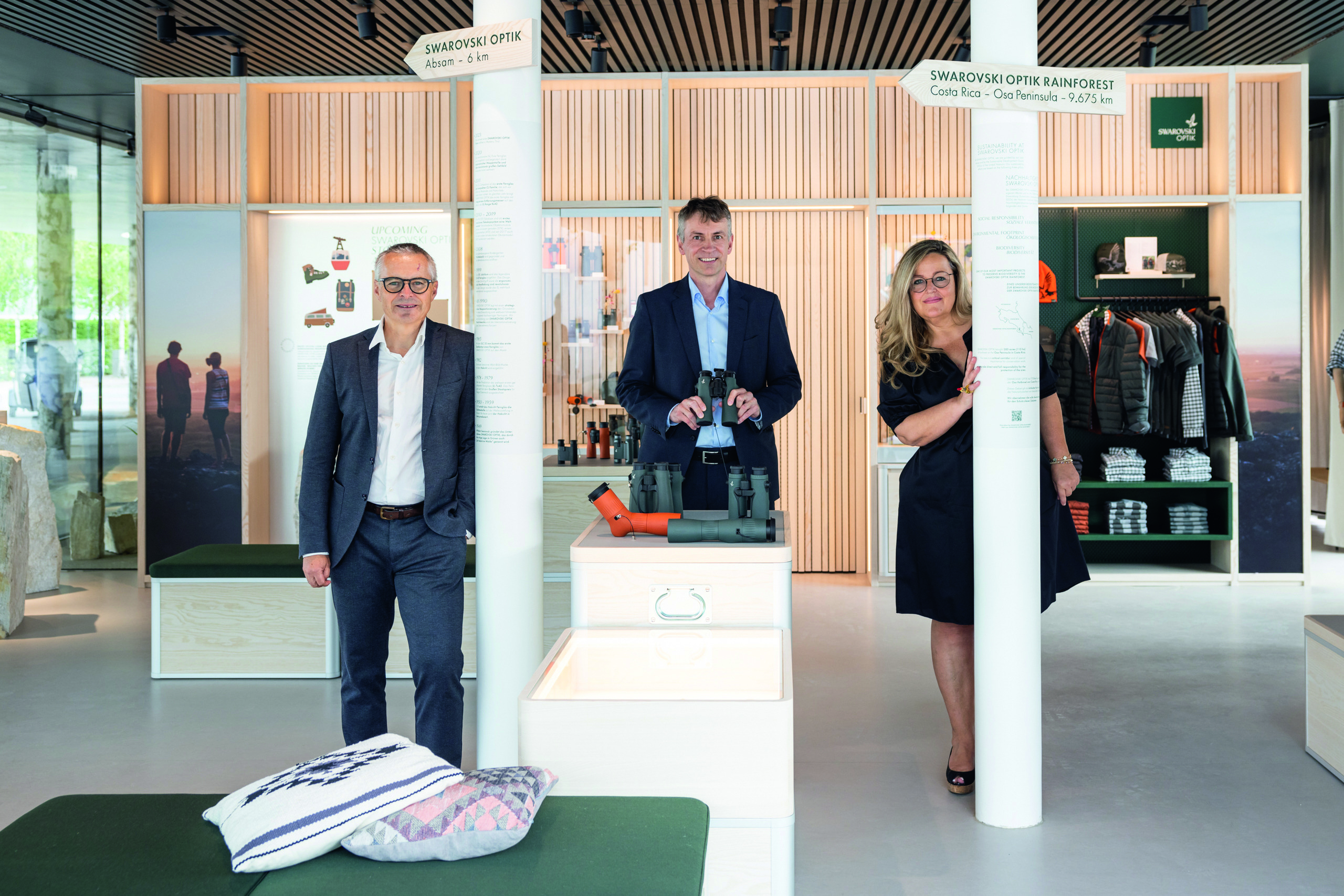 Von links: Stefan Hämmerle (Vorstand Marketing und Vertrieb SWAROVSKI OPTIK), Stefan Isser (Geschäftsführer D. Swarovski Tourism Services GmbH) und Carina Schiestl-Swarovski (Beirat SWAROVSKI OPTIK)